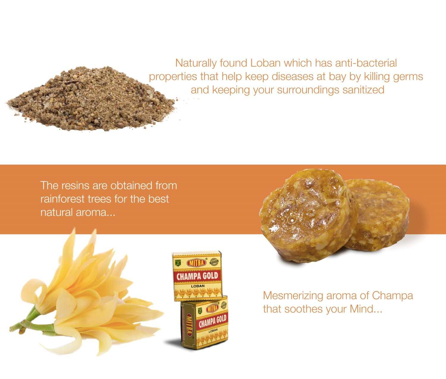 Have you ever had plenty of time at your disposal, taken oil bath, played some divine music, lit up Sambrani and got that calming effect? When the sweet, slightly woodsy smell that many people describe as calming, warming, and moist permeates the ambience; that is the reminiscent of the famous Champa flowers, exuding happiness and serenity. Our Champa gold Loban is mesmerising!